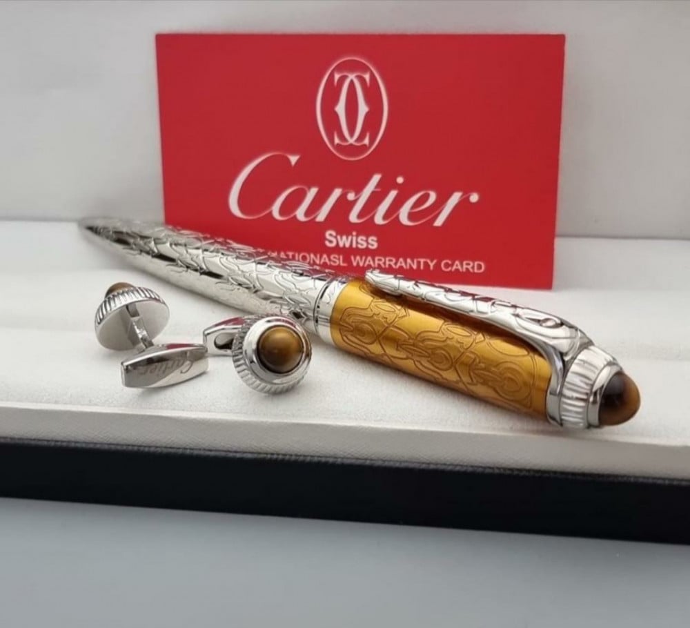 - يتميز قلم و كبك كارتير بالتصميم الأنيق والراقي فهما يجمعان بين الشكل الكلاسيكي واللمسة العصرية، مما يجعلها قطعًا رائعة للاستعراض والاستخدام اليومي.