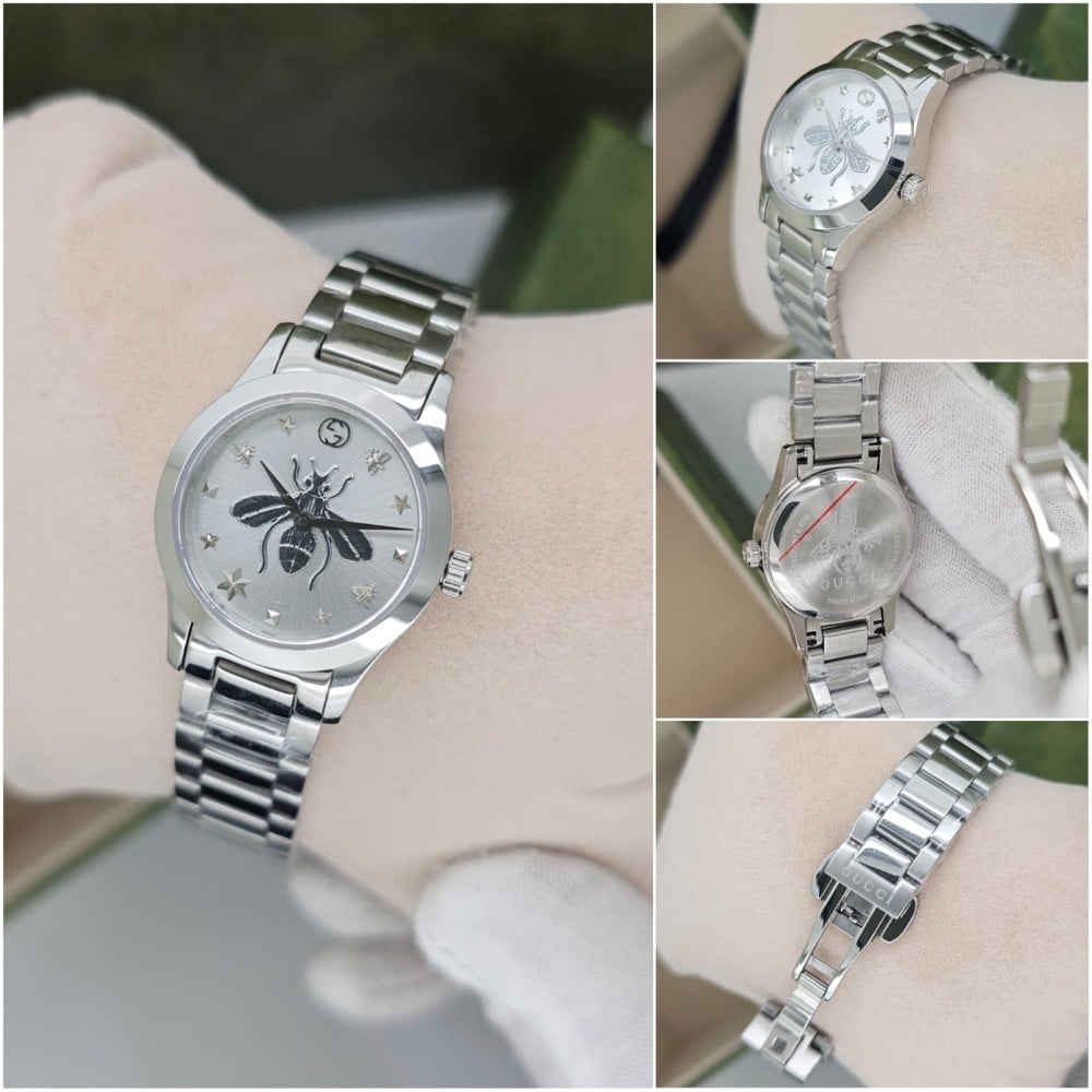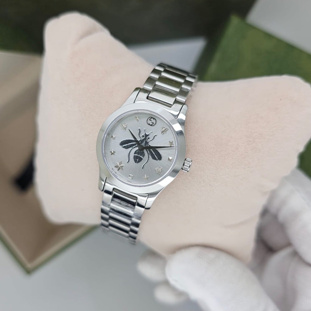 ساعة قوتشي نسائيالأكثر طلباً لدا ماركه قوتشي 👒🔝.Gucci G-timelessاللون ثابت بالساعه .ضمان سنة على اللون والبطارية